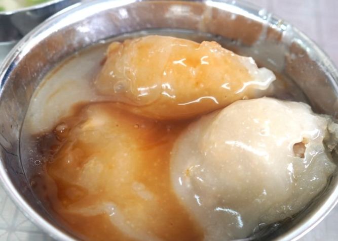 彰化肉圓有名,員林當然也有代表!寶鬥肉圓 是油炸派(彰化肉圓特色),外皮Q彈帶點酥脆感,內餡是醃過的豬後腿肉塊,紮實多汁,筍塊爽脆。醬料是米醬+醬油膏+蒜泥的組合,甜甜鹹鹹很夠味。