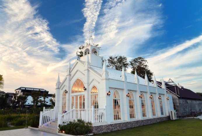 - 介紹: 近年很夯的彰化婚紗基地兼景觀餐廳。園區佈置了非常多夢幻的造景:白色教堂、水上鋼琴、地中海風建築、落羽松林、LOVE字樣、各種童話風格小屋... 非常適合拍照打卡!入園需要門票(可抵部分消費),裡面也有餐廳可以用餐。是個滿足少女心或情侶約會的地方。商業氣息濃厚,但佈景確實適合拍美照。