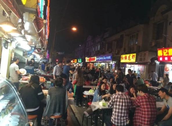 東方明珠電視塔方圓3公里內唯一合法夜市!推薦「王阿姨炸串」的椒鹽排骨年糕(¥15),辣椒粉後勁超強記得配豆奶📍 浦東南路1098號|17:00-23:00|週末有城管驅趕流動攤