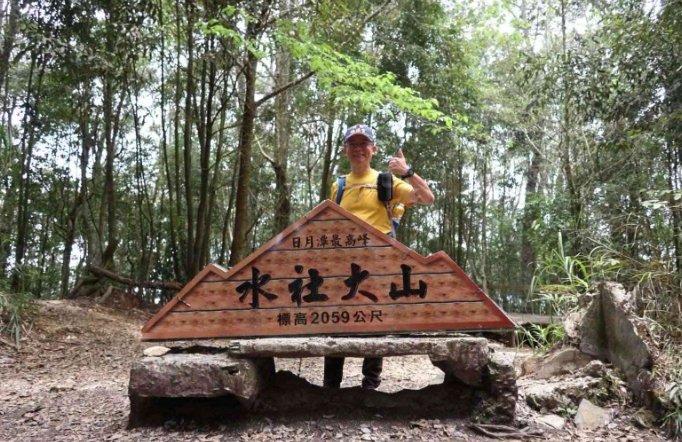 - 水社大山三角點 (5.6K): 登頂啦!恭喜你!海拔2059公尺,一等三角點基石(視野超好就是因為這個!)。這裡有木椅可以休息,天氣晴朗時,270度的展望絕對讓你忘記一路的辛苦。記得帶足夠的水和行動糧在這裡好好補充體力!