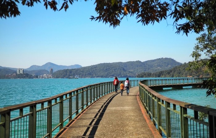 伊達邵親水步道全長約1.5公里,沿著日月潭湖畔蜿蜒,設計得很貼心,木板棧道佔了大半,走起來平穩舒適。我特別喜歡這裡的湖景視角,不像其他觀光點擠滿人,這裡能安靜欣賞潭水和山巒。步道起點在伊達邵碼頭,終點靠近纜車站。沿途有幾個休憩點,像湖心亭和觀景臺,我常在那兒拍照發呆。有一次雨天去,薄霧籠罩湖面,美得像仙境——但木板濕滑,差點摔跤,哈!缺點是部分路段樹蔭少,夏天走會曬。整體來說,伊達邵親水步道很適合親子或新手,輕鬆又療癒。