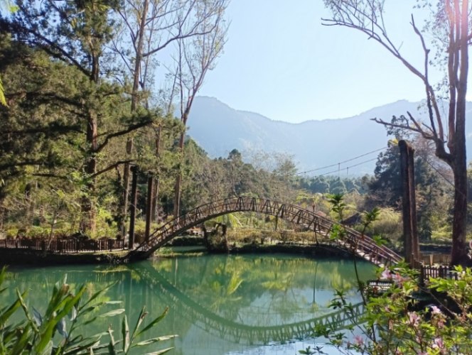 - 大學池: 這絕對是溪頭的招牌!碧綠池水搭配那座彎彎的孟宗竹拱橋,倒影美得像幅畫。無論是清晨的薄霧繚繞,還是午後的陽光灑落,都很有味道。旁邊有座椅,很適合發呆放空。早點來人比較少,拍照也漂亮。