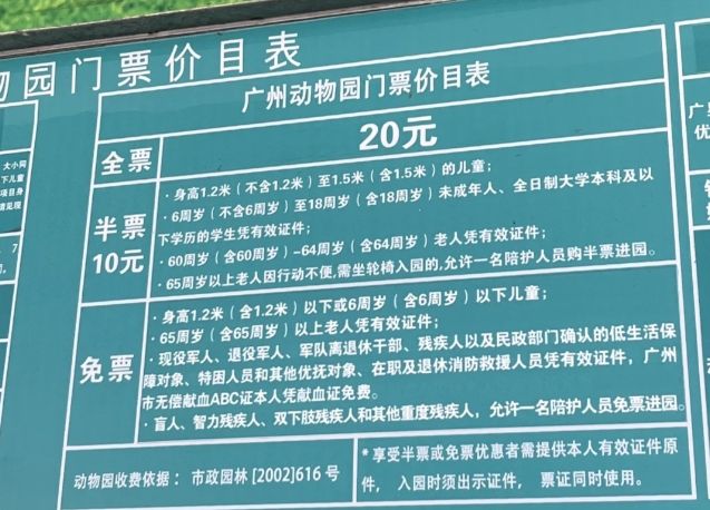 廣州動物園 門票價格一覽表 (僅供參考,請以官方最新公告為準)