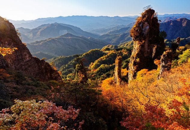 - 介紹: 日本三大奇勝之一(另兩處是富士山與立山),以奇巖怪石、險峻山容聞名。山體由巨大巖壁構成,氣勢磅礡,與榛名山的秀麗完全不同風格。登山步道頗具挑戰性(需手腳並用),但山頂展望絕佳。即使不登山,在「妙義神社」仰望奇巖也夠震撼。