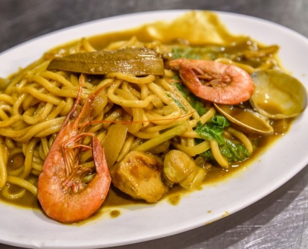 每次來,我幾乎只點一碗超級澎湃的「綜合海鮮魚湯」,加上一碗白飯,就是最完美的組合。這種湯配飯真的絕了!湯頭鮮美濃鬱,白飯吸飽了湯汁,每一口都讓人停不下來。至於炒麵?朋友說得對,真的是配角,試過一次就覺得,嗯,還是專心喝湯吧!