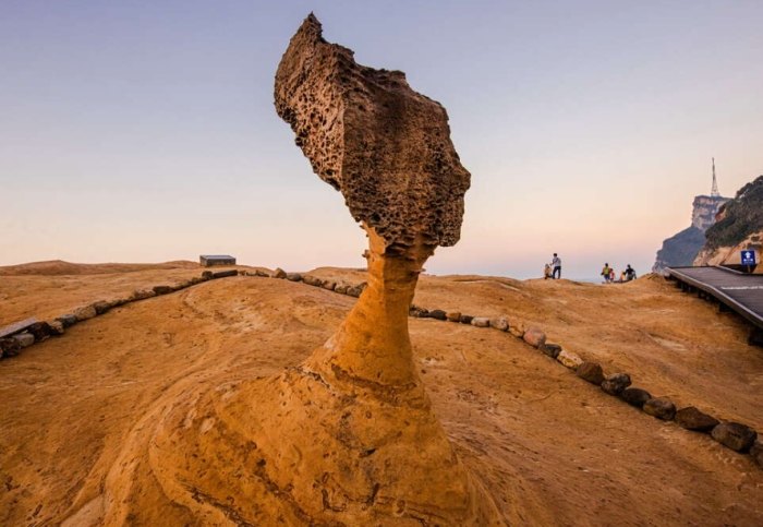 - 介紹: 這應該是萬裡最最最知名的景點了吧!距離萬裡幸福廣場開車只要約 5分鐘。以奇特的海蝕地景聞名於世,尤其是「女王頭」更是臺灣的國際級地標。走在規劃完善的步道上,可以看到各種因海浪侵蝕、風化形成的奇巖怪石,像是俏皮公主、燭臺石、仙女鞋、蜂窩巖、豆腐巖... 等等,大自然的鬼斧神工令人讚嘆。園區維護得很好,也有詳細的導覽解說牌。站在岬角邊緣看海,視野非常遼闊壯觀。