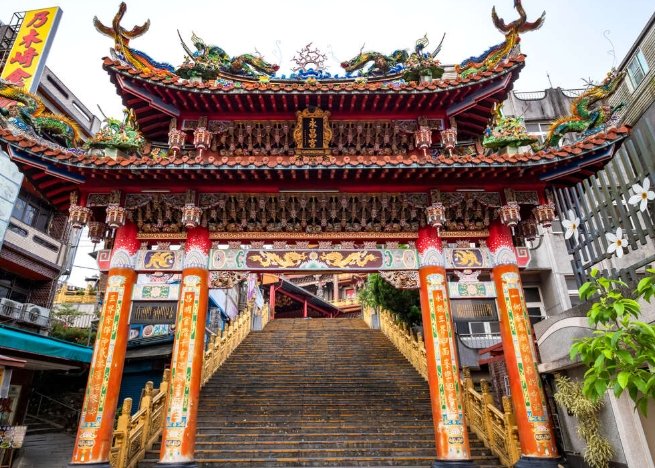 2. 輔天宮: 就在勸化堂下方不遠,主祀地藏王菩薩。它最有名的是那條長長的「道德門」階梯! 從下往上拍,或從上往下看,都很有味道。廟本身不大,但氛圍很莊嚴寧靜,我個人很喜歡這裡的氣氛。(就在勸化堂旁,步行即達)