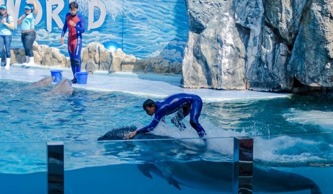 - 海豚表演 (Dolphin Show): 經典專案!聰明可愛的海豚跳躍、頂球、和訓練師互動。氣氛歡樂,適合全年齡。場地有遮陽棚,但早點去佔個好位置(尤其中間靠前)。表演結束還可以付費和海豚合影(價格不菲)。