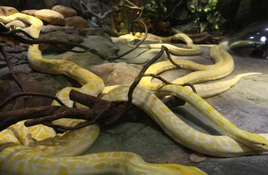 - 金蛇秘境: 各種蛇類(怕蛇的慎入),在模擬自然環境的玻璃通道中展示,360度觀察。