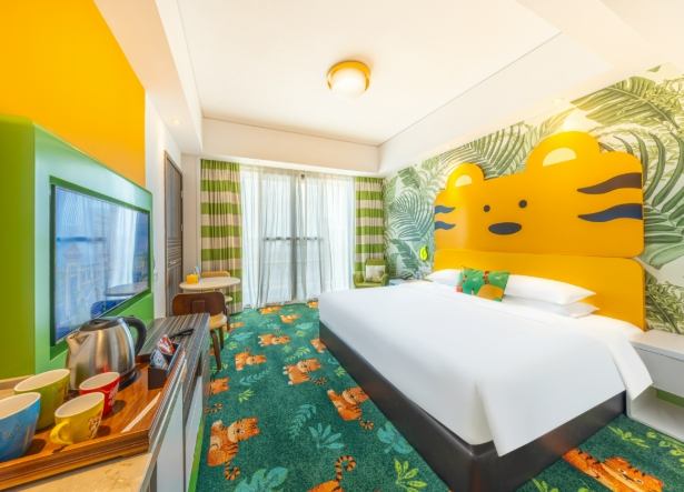 這家定位相對 經濟實惠 一些,但也是官方酒店。風格比較 簡約現代,融合了一些嶺南文化元素。房間相對樸素一點,但乾淨整潔,價效比高。最大的優勢是 價格 比上面兩家親民不少,對於預算有限但又想享受官方酒店便利(尤其是穿梭巴士)的家庭來說是好選擇。雖然主題性不強,但基本需求都能滿足。地址: