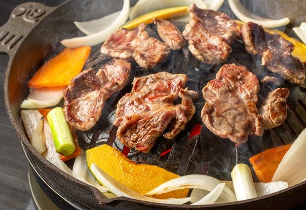 🍖 成吉思汗烤肉 (ジンギスカン):北海道代表性烤肉!用特製圓形鐵鍋烤羊肉與蔬菜。旭川的「大黑屋」是超級名店(永遠在排隊)。羊肉鮮嫩無腥味,搭配特調醬汁超下飯!適合晚餐。提醒:通常一個人也能吃(點單人套餐),別害羞!