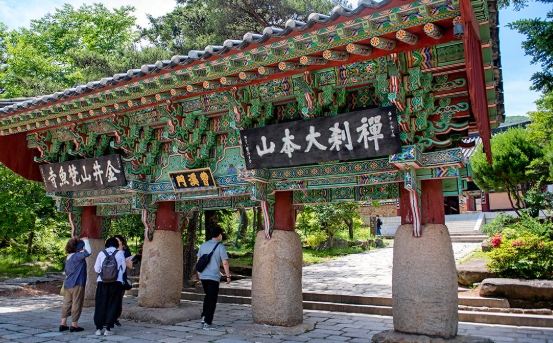 - 天王門 (천왕문, Cheonwangmun Gate): 走過一柱門,沿著松林夾道的清幽小徑往上走,很快會遇到第二道重要的門——天王門。門內供奉著佛教經典中的 四大天王 雕像,面目威嚴,守護著寺廟。仔細看看他們的姿態和法器,很有特色。透過此門,象徵驅除雜念,準備進入更核心的修行之地。