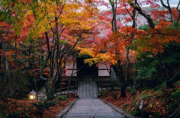 - 天氣預報很重要: 京都天氣多變,尤其春秋季。上山時建議帶件薄外套或防風外套。雨具隨身攜帶(輕便雨衣比雨傘方便,尤其在狹窄山徑或人擠人時)。下雨天的常寂光寺別有一番風情,楓葉沾濕水珠特別鮮豔,石階濕滑務必小心行走。