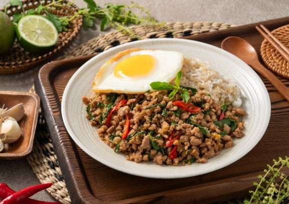 - 必點選單: 打拋豬肉飯、酸辣海鮮湯、綠咖哩雞、金錢蝦餅。