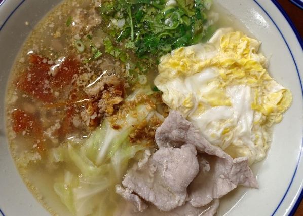 - 特色與亮點: 藏在坑口社群活動中心旁的老攤車(對,沒有店名招牌),只賣早午餐。老闆娘親手揉的米幹,口感Q彈紮實到不行,完全不是機器做的軟趴趴口感。湯頭是純豬大骨熬的,清澈香甜不死鹹,加上一點點自製辣椒油,絕配。