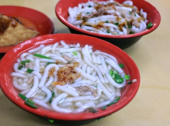 還有一種隱藏版主食,就是米苔目。這裡的米苔目跟其他地方不太一樣,比較粗短,口感更Q更紮實,米香濃鬱。可以吃鹹的(湯的或乾拌)、也可以吃甜的(冰的)。鹹湯通常以大骨湯為底,加上油蔥、韭菜、豆芽菜,簡單清爽;乾拌則會加肉燥和蒜泥,香氣撲鼻;甜的就是加剉冰、糖水、綠豆、粉圓等。推薦理由:百變的庶民美食,從早餐吃到點心消夜都行,能同時滿足鹹甜胃。早餐吃鹹湯米苔目配小菜;夏天下午來碗冰的甜米苔目消暑。想吃在地風味,推薦市場附近的「阿嬤の米苔目」(沒有明確招牌,但問在地人都知道),湯頭清甜,米苔目口感超棒。價格非常親民,湯的一碗約40-50元。他們家的滷豆腐也很有名,必點!