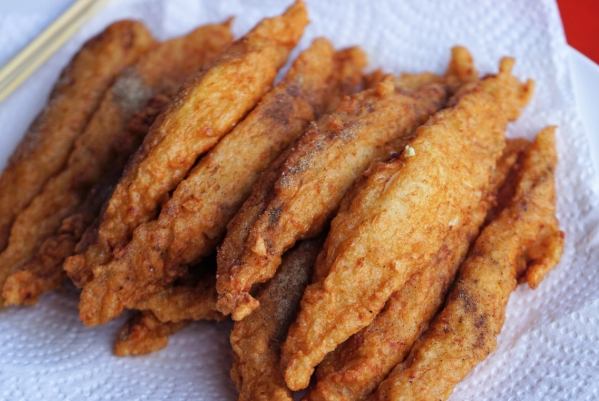 介紹: 除了「瑞字號」,市場裡炸物攤還不少。「三星」也是在地經營很久的攤位,他們的「旗魚黑輪」雖然中間包的不是整顆蛋(通常是半顆或切塊),但魚漿同樣新鮮有彈性,外皮炸得非常酥脆!另外,他們的「花枝丸」非常出色!咬得到大塊大塊的花枝肉,口感Q彈鮮甜,真材實料。其他炸物如地瓜、芋頭餅等也很多人買。不想排瑞字號的超長人龍時,三星是很可靠的選擇,品質穩定,同樣現炸熱騰騰。我覺得他們的花枝丸甚至比旗魚黑輪更驚豔!