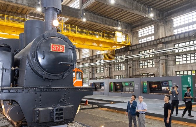 • 為什麼必看? 這棟超大廠房是整個 國家鐵道博物館 的心臟地帶!挑高空間、巨型天車軌道,還有那經典的「大台北」字樣,一走進去就感受到當年火車在此組裝、維修的磅礡氣勢。這裡陳列的都是 重量級角色CT271蒸汽機車 那巨大的動輪,光看就讓人起雞皮疙瘩。還有 R101柴電機車、各式各樣的 客貨車廂(像是骨董級的SPK2300、35SPK3270),它們就靜靜地停在軌道上,歲月的痕跡清晰可見。廠房本身斑駁的牆面、巨大的鐵構件,跟這些列車形成完美的對話,攝影愛好者的天堂!這裡不開冷氣,夏天進去像烤箱,但那股工業歷史的熱力,值了!(記得只在週末假日開放!週間別跑空!)