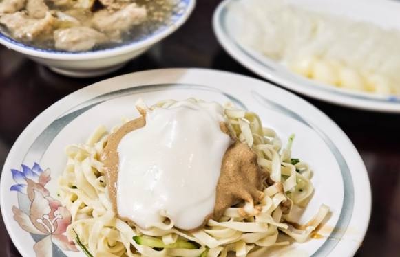 • 🍽 嘉義涼麵: 嘉義涼麵獨樹一格!用的是「白寬麵」(不是一般的油麵喔),淋上濃厚的白醋醬汁(美乃滋混合蒜泥、醋等),口味酸甜鹹香,非常特別!再加點一盤「三色蛋」(皮蛋、鹹蛋、雞蛋)是標準配法。