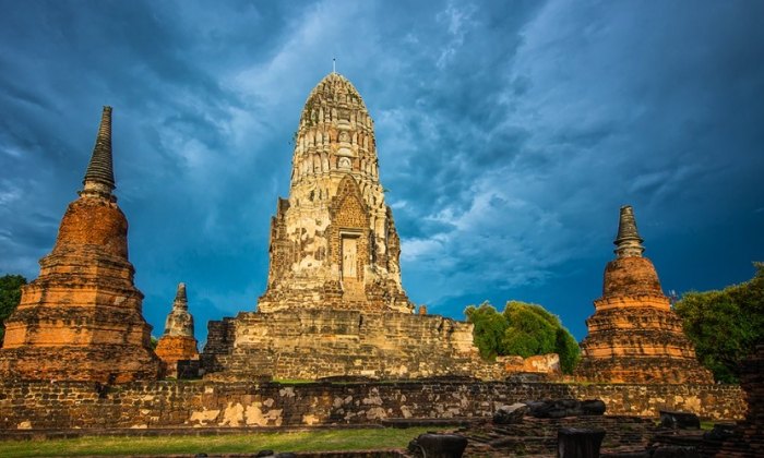 • 介紹: 這可是大城王朝的「王室宗廟」!地位類似曼谷的玉佛寺,是大城王宮的一部分,供奉國王骨灰。寺內三座並列的巨大錫蘭式佛塔(佛骨塔)是大城最經典的地標,印在郵票、明信片上的常客。氣勢恢弘,極具代表性。