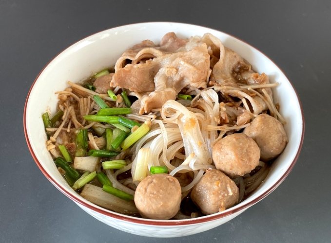 • 肉類: 常見有 牛肉片、豬肉片、牛丸、豬肉丸、豬肝、炸餛飩皮(脆片)。在家做,用 火鍋肉片 最方便,燙一下就好。喜歡內臟的可以加點 燙熟的豬肝(切片要薄,燙到剛熟最嫩)。牛丸豬丸在超市冷凍櫃能找到泰式或港式的替代。