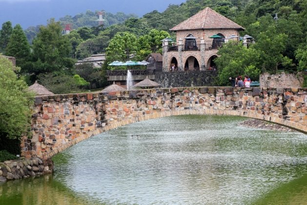 雖然花瀑在它外面,但這個歐風莊園本身就是個很好拍照的地方(需門票,可抵部分消費)。城堡造景、可愛造景、大片草坪,很適合帶小孩跑跳。逛累了可以在裡面喝個下午茶,看看他們自己種植的花卉。不過我得老實說,裡面的花當然比不上外面百公尺 石斛蘭瀑布 的氣勢,主要是買個氛圍和休息的地方。門票值不值?見仁見智,如果你時間充裕、喜歡拍網美照,可以進去晃晃。 - 百菇莊: