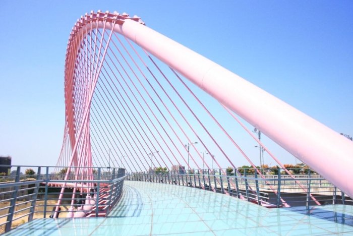 - 介紹: 跟上面的情人橋不同喔!這座整座橋身都是粉紅色的,造型也很特別,是許多網美打卡熱點。也在祥順西路附近。