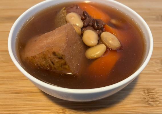 - 粉葛 + 紅蘿蔔 + 瘦肉(豬腱或排骨):這是我家最常煮的「定番款」!紅蘿蔔的天然甜味能完美中和粉葛的土味並增加甜度,重點是湯色會變成漂亮的淺琥珀色,看起來更有食慾。瘦肉提供蛋白質和鮮味,讓湯頭更醇厚。豬腱肉燉煮後軟嫩不柴,油脂少,喝起來較清爽。這組合可以說是將粉葛湯功效與美味結合的典範。