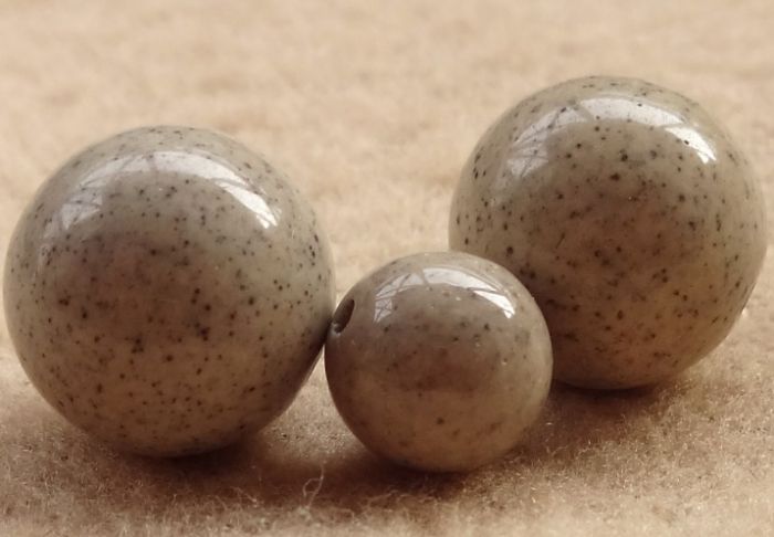- 重晶石: 主要成分是硫酸鋇,密度非常高(拿在手裡沉甸甸),沒有放射性,沒有溫熱感。常被磨成珠子冒充。