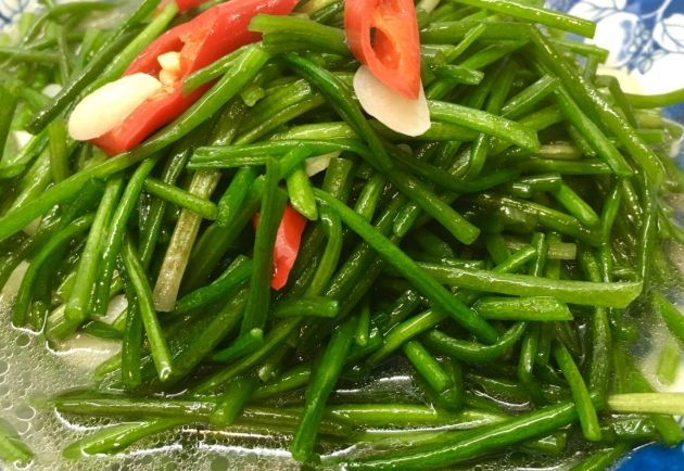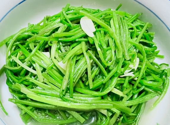 - 火候不夠/炒太久: 這是最大主因!鍋不夠熱、油溫不夠、一次下太多導致鍋溫下降、翻炒時間過長(超過2分鐘),都會讓水蓮失去脆度、出水變軟,甚至顏色變暗沉發黑。記得一定要「大火熱鍋快炒」!