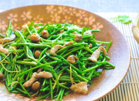- 麻油薑絲: 冬天很適合,麻油爆香薑絲(薑絲要多一點),再放入水蓮快炒,起鍋前淋點米酒,香氣十足又溫和。