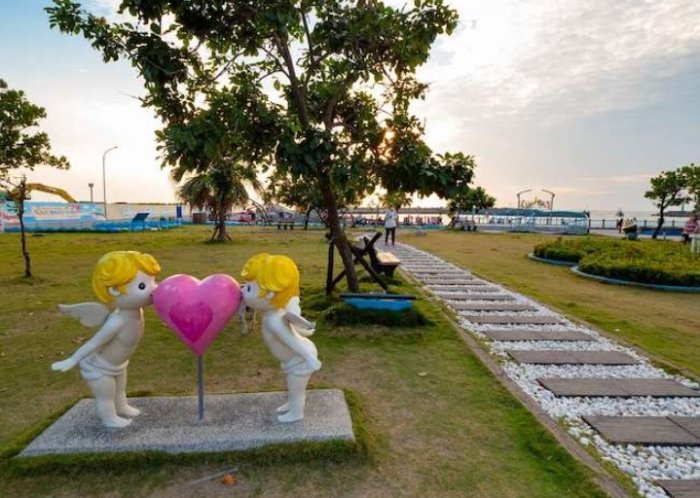 - 特色造景打卡點: 園區裡設定了不少海洋元素的裝置藝術,比如大大的貝殼座椅、帆船造景、彩繪牆(蠻可愛的,適合拍照)。雖然不是什麼超級藝術大作,但氛圍感營造得不錯,尤其是帶小朋友來,他們會很喜歡在這些地方跑來跑去拍照。