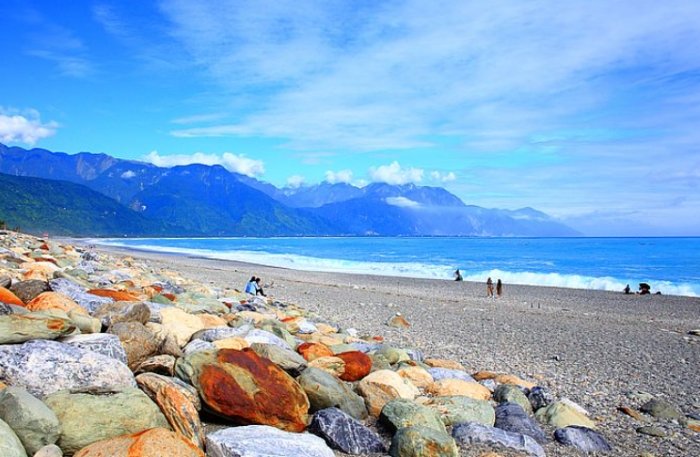 這裡的海不像南部墾丁那種細白沙,踩上去軟綿綿的。七星潭風景區的海灘是礫石鋪成的,大大小小的鵝卵石,被海水沖刷得圓潤光滑,踩上去嘎吱嘎吱響。顏色也好看,灰的、白的、黑的、帶點綠的...陽光一照,閃閃發光,真的像散落一地的星星(這大概就是名字的浪漫來源?)。七星潭風景區就是這麼獨特,它不跟你玩溫柔,而是用這種粗糲又閃亮的方式,展現太平洋的原始力量。坐在這裡聽海浪推著石頭滾動的嘩啦聲,比什麼白噪音App都管用,能叫人發呆一整個下午。