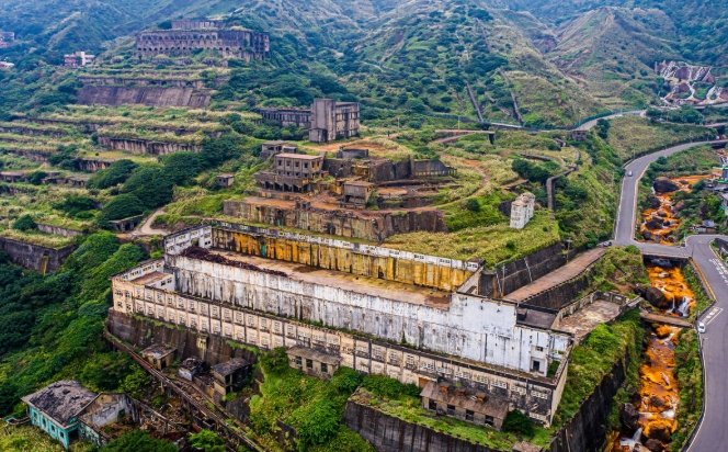 - 🎭 時代背景板 - 十三層遺址: 既然都到黃金瀑布了,怎麼能不去看看它背後的「原因」?開車2分鐘就到了赫赫有名的「十三層遺址」(水湳洞選煉廠遺址)。這個龐大廢棄的礦業工廠,依山而建,層層疊疊,在暮色中像極了一座神秘的天空之城。站在它面前,看著鏽跡斑斑的鋼鐵結構,再回頭望望那金黃色的瀑布,你會瞬間明白這奇幻色彩的源頭,感受到歷史的沉重與滄桑。晚上有時會點燈,又是另一番魔幻景象。