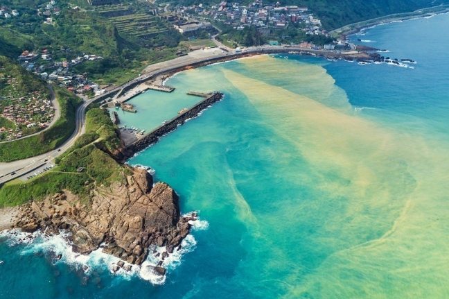 - 🌈 大自然的調色盤 - 陰陽海: 從十三層遺址再往下開一點點,就到了水湳洞海邊,著名的「陰陽海」就在眼前。黃金瀑布富含礦物質的水流入海灣,因為密度不同未能完全擴散,形成了獨特的黃藍分明的海面,像打翻的調色盤。站在海邊,看金黃瀑布、巨大工業遺址、分層的海水同框,這種超現實的組合,全世界也少有吧?