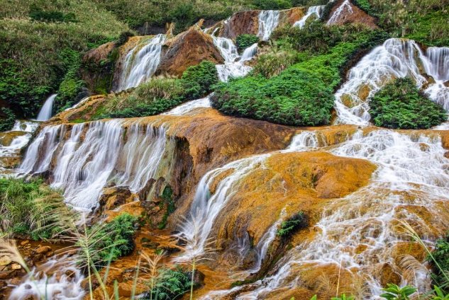 以前這附近可是挖金礦、銅礦的大本營。礦坑裡的水啊,富含了鐵離子和銅離子,加上硫磺作用,長年累月地滲透、氧化,就在這些岩石上留下了厚厚的沉澱物,形成了這種獨特的「鐵繡」。然後呢,山泉水潤物細無聲地流過這些染色的巖壁,哇啦!一幅活生生的、流動的黃金畫卷就誕生了!所以嚴格講,黃金瀑布這名字取得真是貼切又夢幻,它本身就是大自然和人類礦業殘留共同創作的巨型藝術品。尤其在雨後水量豐沛的時候,那金光燦燦的水流奔騰的力道,配上背景的綠山,對比強烈到不行,超級壯觀!但別指望看到尼亞加拉那種落差,它的美在於那獨一無二的色彩和地質故事。