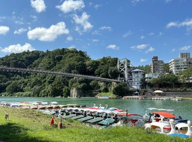 當然,碧潭吊橋絕對是地標!長達200公尺,橫跨新店溪,紅色的橋身配上碧綠的潭水(天氣好時真的很碧綠!),怎麼拍怎麼美。白天走上去,視野開闊,可以遠眺兩岸山景和天鵝船點綴的水面。晚上點燈後更浪漫,橋身映在水面,光影婆娑,是情侶約會的熱點。提醒一下,吊橋會晃喔!雖然安全無虞,但怕高或帶小孩的朋友牽緊一點。我記得第一次走時有點緊張,後來習慣了還覺得那微微的晃動感很特別,像在搭船。