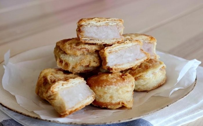 - 廟口有個賣炸芋頭糕的攤車,名氣不小,但我個人覺得… 有點油😅。外皮炸得是酥脆,但裡面的芋頭糕體偏軟爛,香氣也不夠,吃兩塊就膩了。嚐鮮可以買一塊試試,別像我傻傻買一大盒。