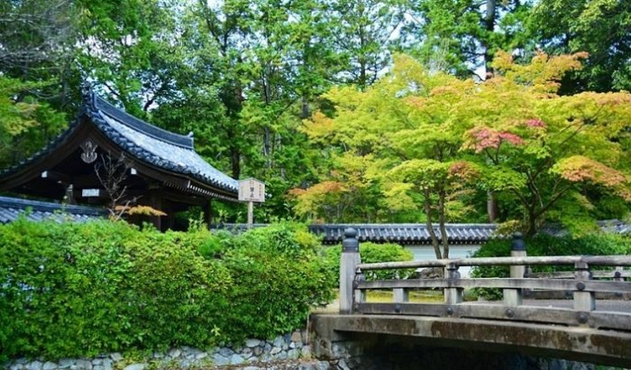 介紹: 這個寺就在西芳寺巴士站旁邊(同一個站名!),所以超級順路。它本身也是個以「幸福」聞名的寺廟。特色是寺內飼養了很多鈴蟲(金鐘兒),夏末秋初能聽到蟲鳴(故名鈴蟲寺)。這裡最有名的是「幸福地藏」和據說聽了能帶來智慧與幸福的「和尚說法」(大約每小時一場,全日語但氛圍有趣)。庭院小而精巧,以楓葉和竹林見長。