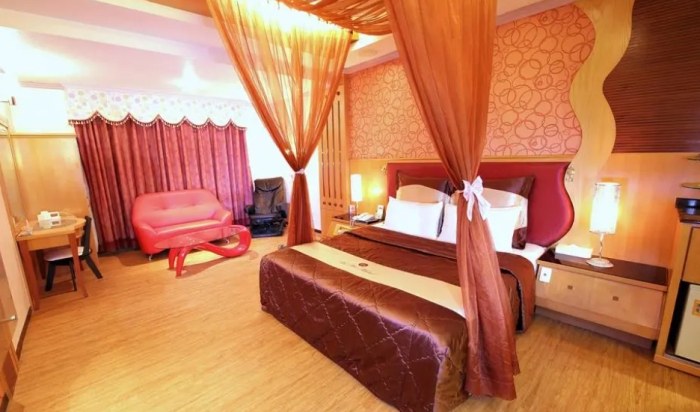 - 房型與價格: 房型多到眼花撩亂!從基本商務房到擁有私人泳池、旋轉車床的頂級房都有。住宿價格約 NT$3,800起跳,頂級房破萬。休息方案約 NT$880起/3小時。