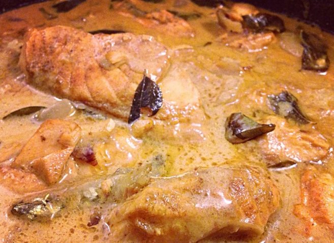 - 開小火,倒入整罐「椰奶」,輕輕攪拌均勻(避免大力攪爛魚肉)。