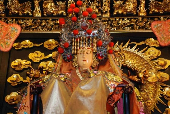 - 正殿媽祖聖像與神龕: 這是整座廟的核心。正殿中央神龕內供奉的鎮殿媽祖,面相莊嚴慈祥,神威赫赫又帶著母性的溫暖。神龕本身也是金碧輝煌的木雕傑作。抬頭看,那些層層疊疊的斗拱結構、藻井,都是傳統建築智慧的展現。在這裡誠心合十,感覺特別平靜。記得觀察神桌上其他媽祖分身像,各有特色。