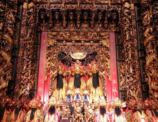 - 巍峨壯觀的廟宇建築: 主殿挑高宏偉,藻井繁複精緻,石雕、木雕、彩繪無一不是匠師心血。抬頭仰望,那細緻的斗拱與絢麗的樑枋彩繪,講述著無數傳統故事。一定要繞到廟後方,欣賞依山勢而建的層疊樓閣景觀(凌霄寶殿、觀音殿等),氣勢非凡。建築本身,就是一場視覺的盛宴。