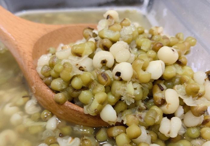 - 綠豆開花,薏仁透心: 煮到大概30-40分鐘時,可以夾一顆綠豆和一粒薏仁試試口感。