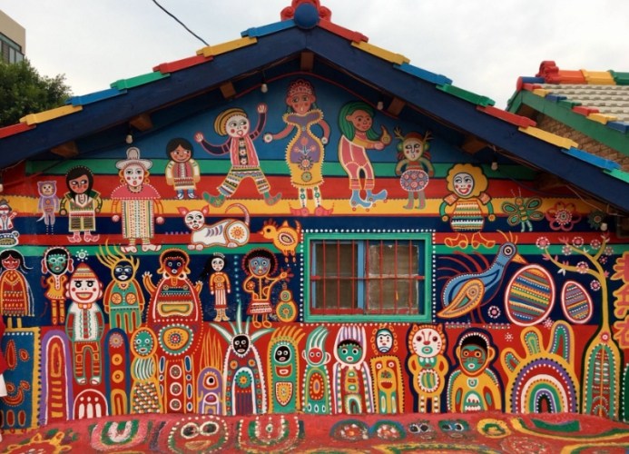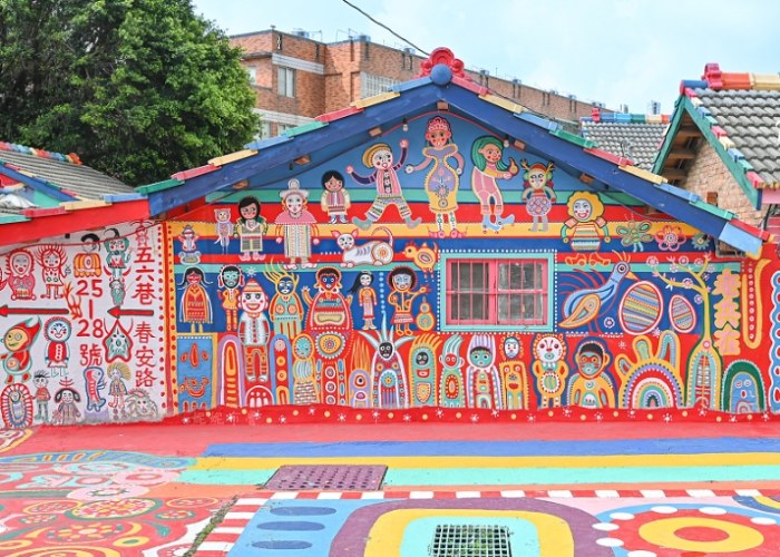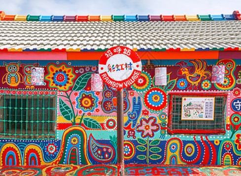 - 彩虹爺爺的初心小屋: 這裡是整個彩虹眷村的起點。仔細看牆上的畫,充滿了質樸的童趣和濃濃的祝福——胖娃娃、小動物、吉祥話(「平安」、「囍」超常見)。爺爺當初就是為了排遣無聊、留住回憶才開始畫的,筆觸直接又真誠。站在這裡,特別能感受到那股單純想創造美好的心意。思考:為什麼這些簡單的圖案能打動這麼多人?也許就是那份毫無修飾的真吧。