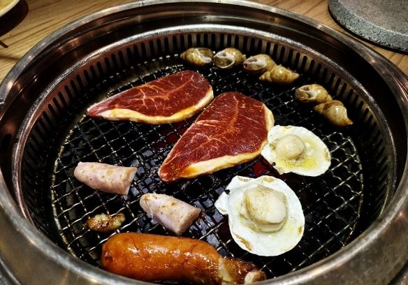 必點菜單: 韓式辣醬豬五花 (醃漬入味,烤到微焦包生菜)、蒜味雞腿肉 (蒜香濃郁,肉質嫩)、烤麻糬冰淇淋 (自己烤趣味十足)。