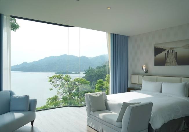 介紹: 以夢幻湖景和網美玻璃屋餐廳聞名!住宿區是獨立的Villa房型,現代簡約設計。最大賣點是房間或陽台就能欣賞鯉魚潭水庫(又稱明德水庫)的湖光山色,景觀一流。適合情侶或追求浪漫氛圍的人。