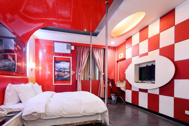 • 特色:裝置「澎湃」,視覺衝擊強烈。很多房型娛樂設施豐富(KTV)。