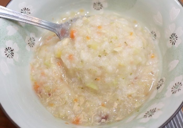 這款很適合當入門粥品,蘋果天然的甜味寶寶很喜歡,燕麥片增加纖維和口感。